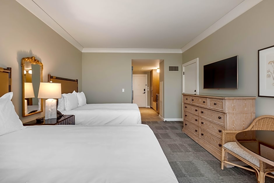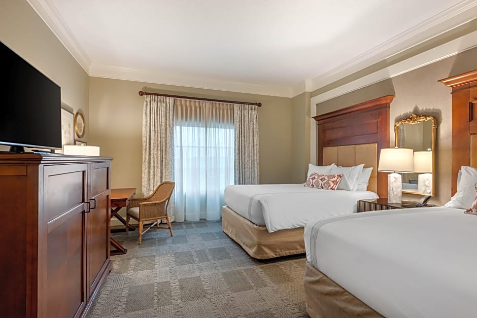 This suite features 1 King-sized bed, 2 baths, a dressing area and 42-inch cable televisions. This room also features a separate living or dining room area, a stocked refreshment center and ironing facilities.