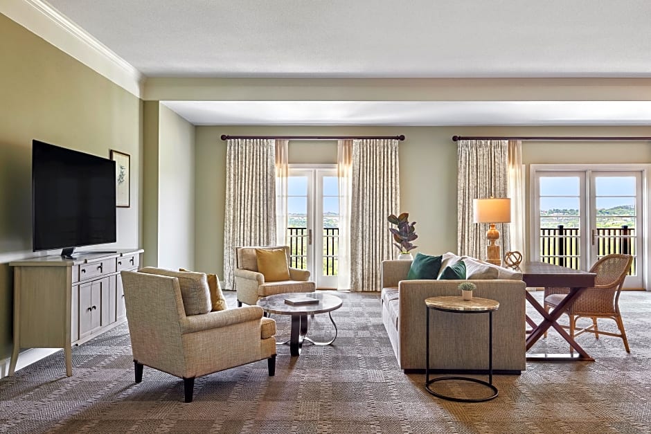 Signature fairway suite - 1 king bed is 904 square feet and includes a king-size bed 150-183 width plus balcony, extra beds on demand, and slippers.